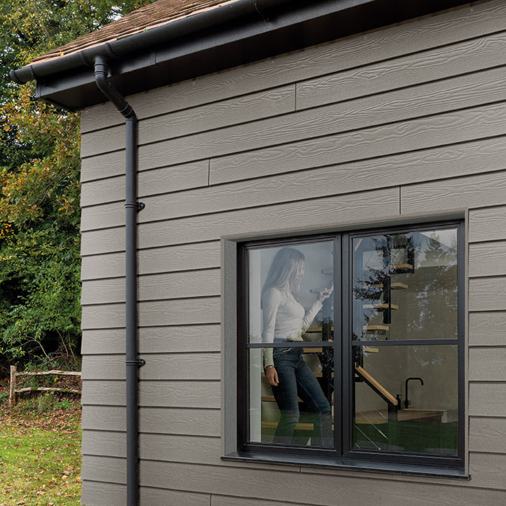 This woodgrain fibre cement weatherboard measures 190mm x 3600mm x 10mm and is factory-finished in a soft, versatile grey.