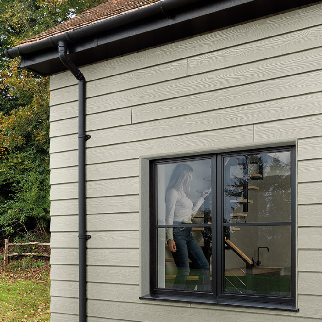 This fibre cement weatherboard features a gentle green tone with a woodgrain finish, combining charm with hard-wearing durability.